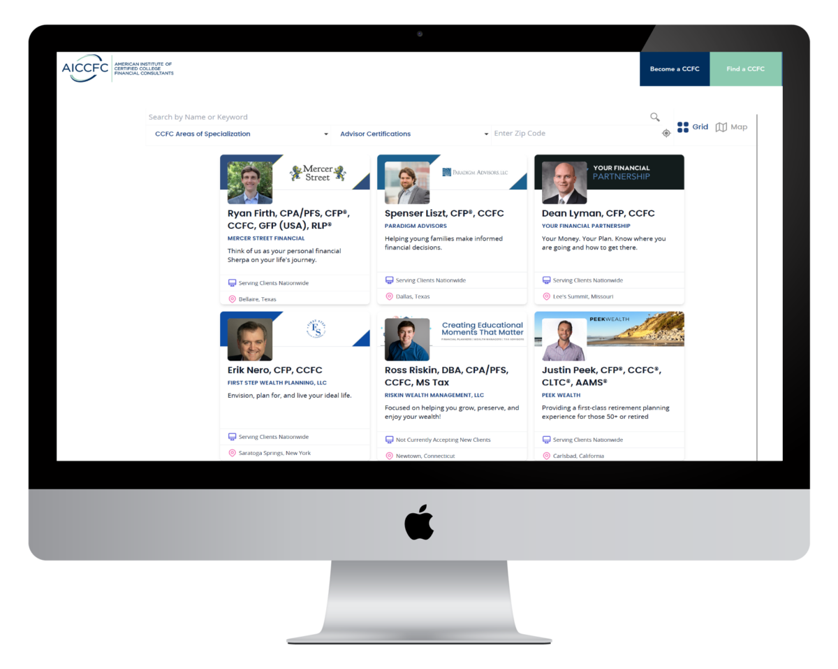 The American Institute of Certified College Financial Consultants (AICCFC) counts on Wealthtender to help consumers find CCFC credential holders nationwide.